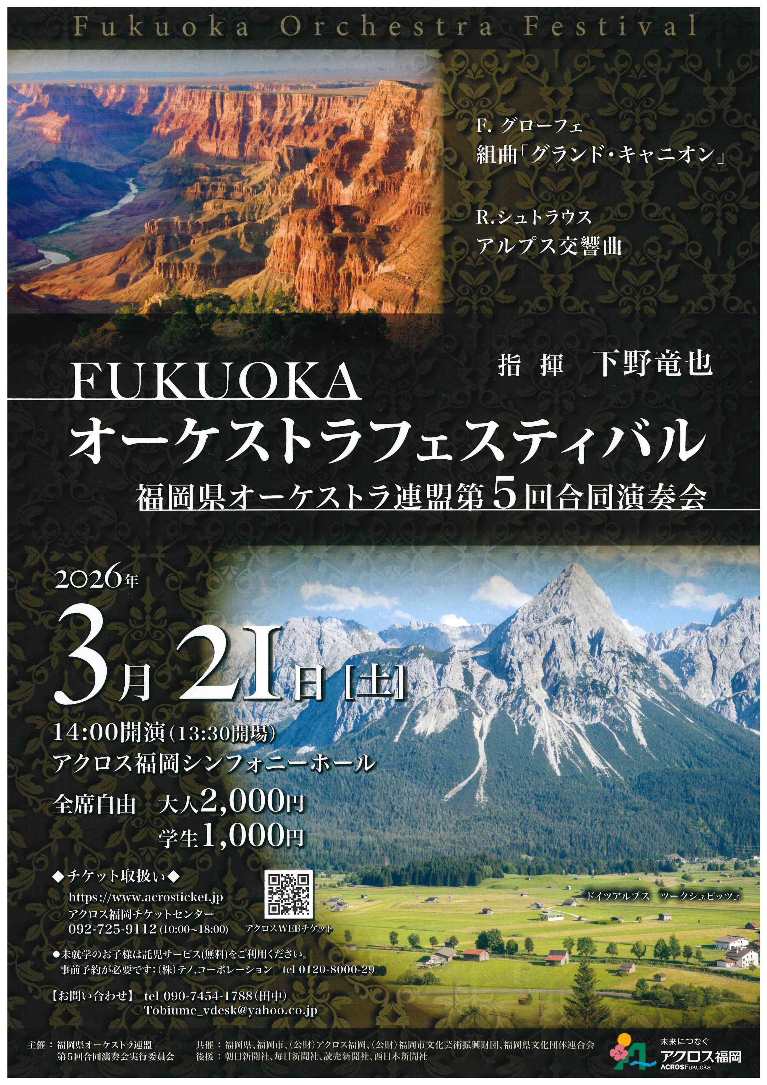 福岡県オーケストラ連盟は、県内有数の奏者が結集する’オーケストラの祭典’ 第5回合同演奏会をアクロス福岡シンフォニーホールにて開催いたします。